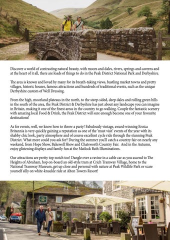 Discover a world of contrasting natural beauty, with moors and dales, rivers, springs and caverns and at the heart of it all, there are loads of things to do in the Peak District National Park and Derbyshire. The area is known and loved by many for its breath-taking views, bustling market towns and pretty villages, historic houses, famous attractions and hundreds of traditional events, such as the unique Derbyshire custom of Well Dressing. From the high, moorland plateaus in the north, to the steep-sided, deep dales and rolling green hills in the south of the area, the Peak District & Derbyshire has just about any landscape you can imagine in Britain, making it one of the finest areas in the country to go walking. Couple the fantastic scenery with amazing local Food & Drink, the Peak District will sure enough become one of your favourite destinations! As for events, well, we know how to throw a party! Fabulously vintage, award-winning Eroica Britannia is very quickly gaining a reputation as one of the ‘must visit’ events of the year with its shabby chic look, party atmosphere and of course excellent cycle ride through the stunning Peak District. What more could you ask for? During the summer you’ll catch a country fair on nearly any weekend, from Hope Show, Bakewell Show and Chatsworth Country Fair. And in the Autumn, enjoy glistening displays and family fun at the Matlock Bath Illuminations. Our attractions are pretty top-notch too! Dangle over a ravine in a cable car as you ascend to The Heights of Abraham, hop on-board an old-style tram at Crich Tramway Village, home to the National Tramway Museum, get up close and personal with nature at Peak Wildlife Park or scare yourself silly on white-knuckle ride at Alton Towers Resort!