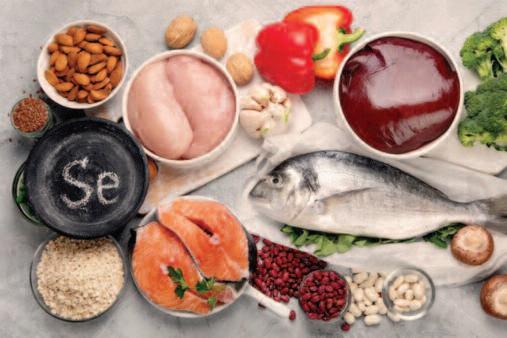 ste mineral suele incluirse entre los antioxidantes por su par ticipación en la formación del glutatión peroxidasa, una enzima que protege del daño oxidativo Se encuentra en var ios grupos de alimentos, pero en baja cantidad, es por eso que suele dar bajo en la población La cantidad diaria recomendada de selenio (CDR) son 70 microgramos para adultos.