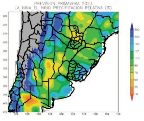 el norte y el sudoeste de la Región Pampeana, el oeste de la Mesopotamia recibirá aportes superiores a la media, mientras que el sur del Brasil, el este de la Mesopotamia, gran parte del este de la Región Pampeana y el Uruguay observarán precipitaciones inferiores a lo normal.
