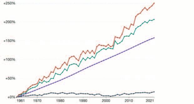 “De 1961 a 2021 en 60 años en el mundo gracias a la tecnificación del agro, la producción de cereales creció un 250% Esto fue por un +200% en los rindes y +30% en la superficie cultivada mundial y permite alimentar cada vez mejor a la población que creció +170%”
