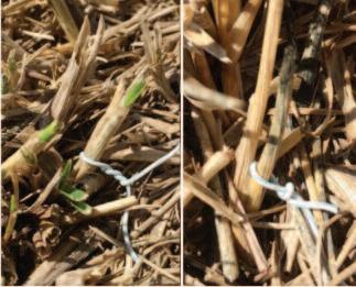 También es necesar io ser cuidadosos con los remanentes post-pastoreo/cor te Las especies tendrán un volumen de desarrollo de macollos o coronas aún incipiente, con lo cual, es posible que la cober tura de suelo no sea completa o queden espacios sin ocupar. Esto, combinado con remanentes post pastoreo muy bajos sobre los inicios de la estación cálida, pueden llevar a altas temperaturas de suelo en las áreas descubier tas que ponen en r iesgo la super vivencia de macollos Un claro ejemplo es lo que ocurre con las festucas Está comprobado que, con remanentes menores a 3 cm durante enero y febrero, las temperaturas de suelo en superficie pueden llegar a los 50°C, mientras que si el remanente es de alrededor de 10 cm, difícilmente superen los 30°C Esto afecta directamente a la super vivencia de los macollos Para el pr imer caso de bajos remanentes, pueden darse mor tandades del 40 al 50% de los macollos; mientras que, con el mayor remanente, las super vivencias pueden ser del 85-90%