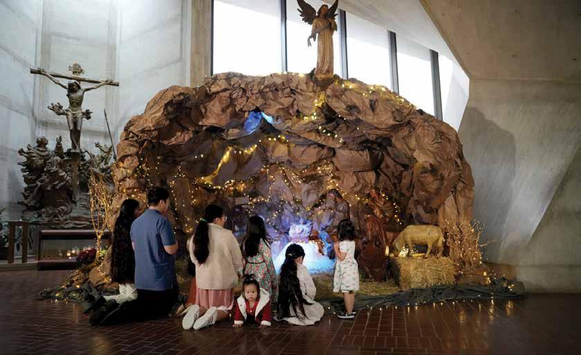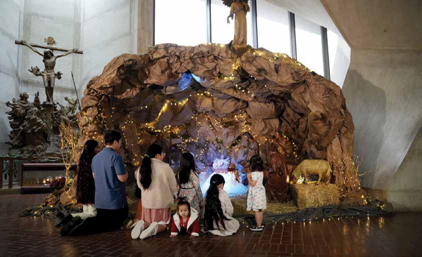 Members of the Dumlao family admire the Nativity scene at the Cathedral of St. Mary of the Assumption in San Francisco.