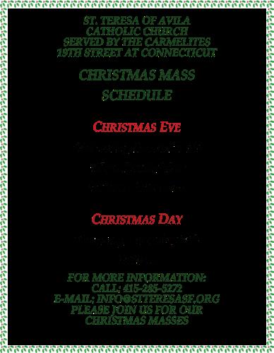 Wednesday, December 25 7:30am, 9:30am, 11:30am 4:00pm (Traditional Latin Mass)