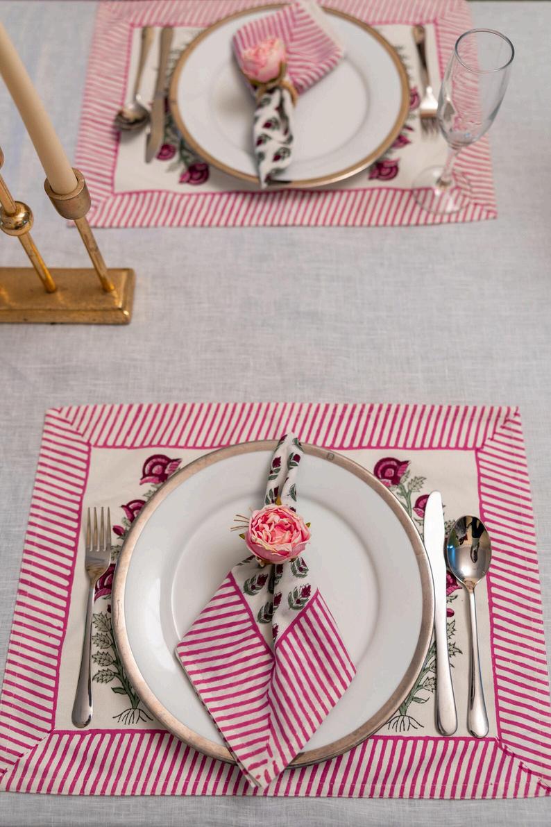 Block Print Placemat & Cloth Napkin RANI PINK NEW YORK