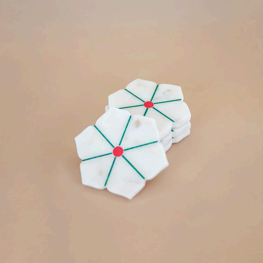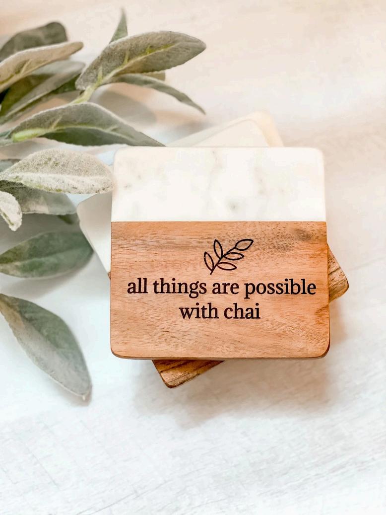 Chai Marble & Wood Coaster Set HOME BOUND CUSTOM DECOR