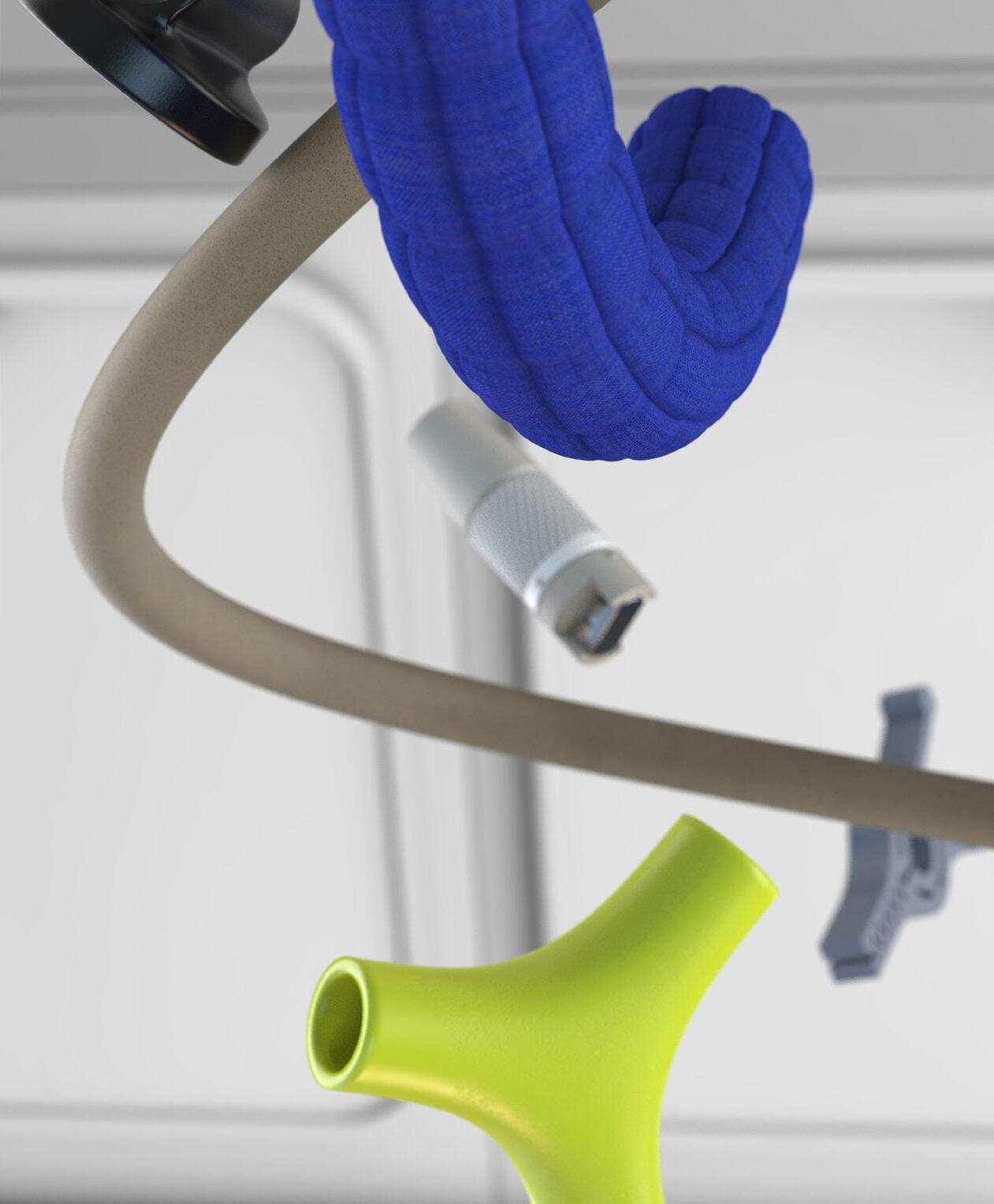 e arms of the system were created to be versatile and functional, allowing users to easily access and manipulate objects while in space. ey can hold various objects, via clips, hubs, and magnetic pads. ese attachments can be easily attached or detached from the arms, depending on the user’s needs, making it incredibly easy for individuals to customize their environment and workspaces.