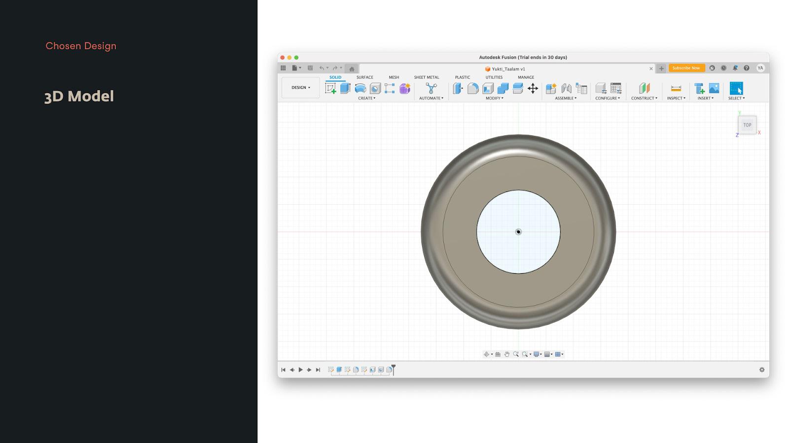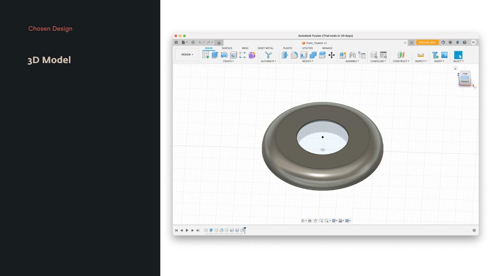 The fnal version of the prototype was created using 3D printing technology. Once completed, it was placed on top of an iPad mini device to act as the digital display for the prototype. This allowed me to test and demonstrate the physical interactions and mechanics of the prototype while also showcasing the digital interface and capabilities that could be integrated into the fnal product. The use of an iPad mini also provided a convenient and portable way to display the digital aspects of the prototype during presentations or demonstrations.