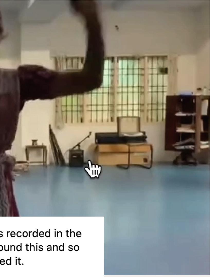 One of my top fndings from Bharatanatyam experts was the problem of access. Historically, the dance form has had an oral tradition passed down from teacher to student over generations. Diferent dance schools have also practiced gatekeeping, discouraging students from sharing the choreography and music on YouTube for example. Moreover, the dance form is over 2000 years old and its vocabulary is primarily in Sanskrit, which is no longer a widely spoken language. The key learnings here were that Bharatanatyam is not very accessible to people that have not grown or trained in this tradition. People from outside the tradition that want to learn or collaborate fnd it difcult to gain understanding and knowledge about the dance form.
