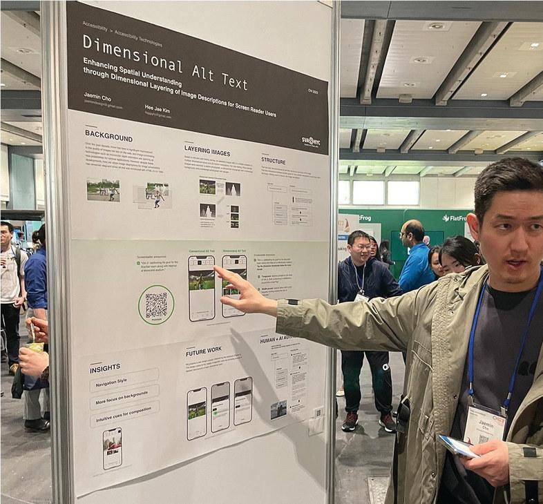 * Jaemin Cho and Hee Jae Kim. 2023. Dimensional alt text: Enhancing Spatial Understanding through Dimensional Layering of Image Descriptions for Screen Reader Users. In Extended Abstracts of the 2023 CHI Conference on Human Factors in Computing Systems (CHI EA ‘23). Association for Computing Machinery, New York, NY, USA, Article 86, 1–6. https://doi. org/10.1145/3544549.3585706