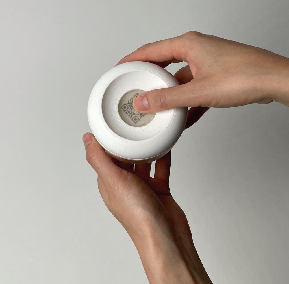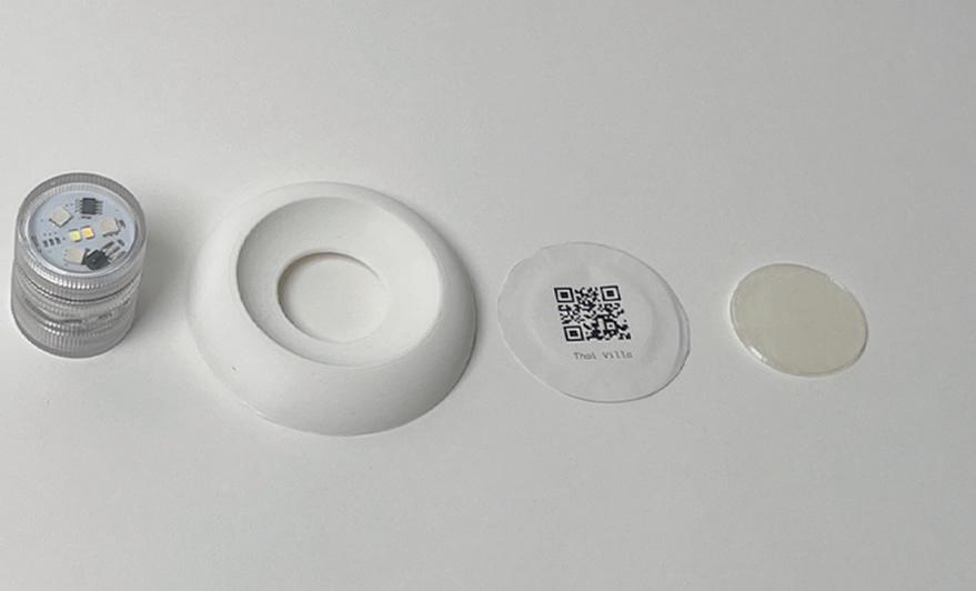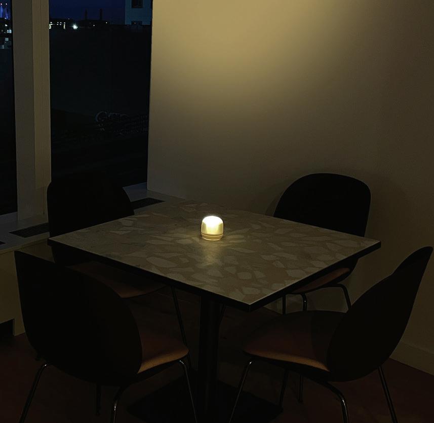 The Beacon’s unique design features a two-way lighting system that creates a beautiful reflection on the table. Meanwhile the top light functions as a backlight for the QR code.