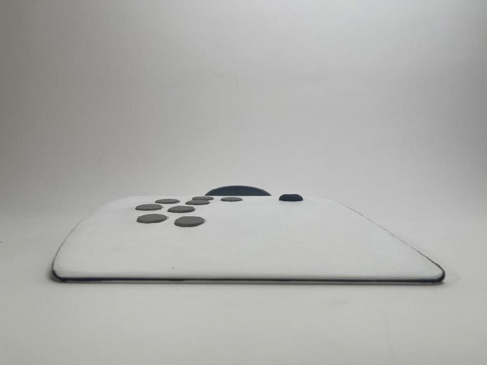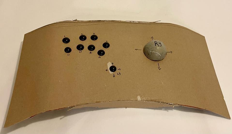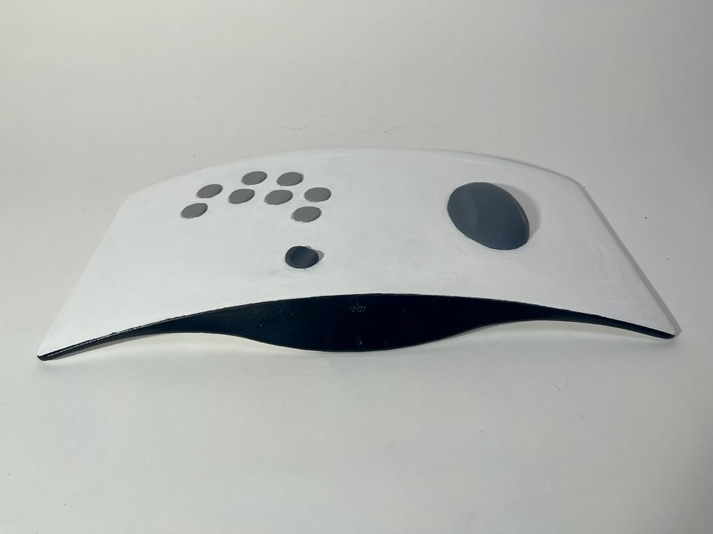 The design features 8 main buttons and a thumb joystick on the left side intended to be used with his hand in a resting fashion.
