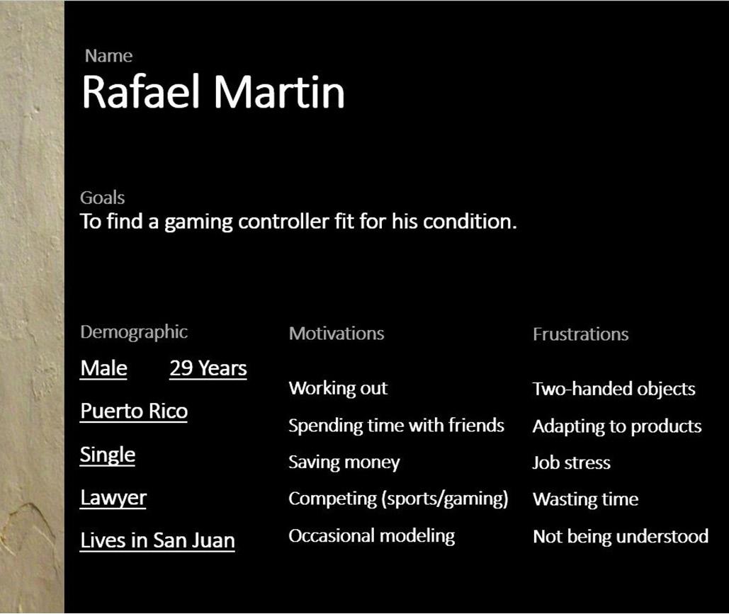 Essentially the goal of this research is to encapsulate and synthesize the physical, and more importantly, the psychological benefits of gaming for people with motor disabilities and end up with a product that could help people like my brother. This not a topic I stumbled upon while searching for a project, this is a topic that I have experienced through my brother and hold dear to my heart. Even though everyone’s disability and how they handle them is different, I intend to complete this project with as many of them in mind as possible and show the gaming industry what they should be doing. With all this being said, I believe that there is much work to be done in this process I call “Thesis”; Many unknowns to be known and many uncertainties to be clarified, but at this point in the project I am certain that I plan to study the difficulties people with disabilities encounter in the gaming industry because I am interested in creating a line of products, services and experiences that adapt to their necessities and represent their community.