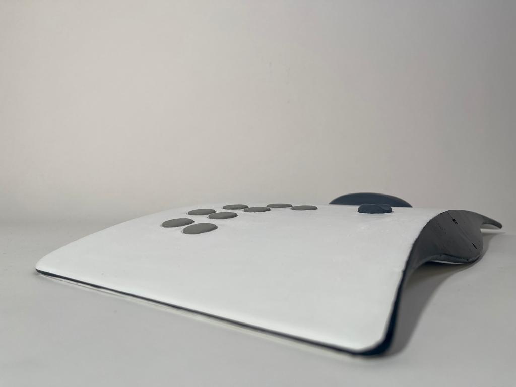I present to you all the Playmaker. The Playmaker is an adaptive gaming controller designed to sit on my brother’s lap without having to use his hands or a desk to support it.