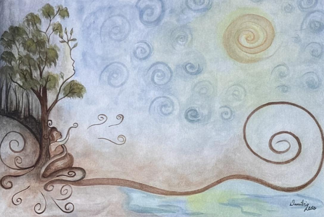 Em uma tela vibrante, o Pantanal em chamas é retratado em tons de vermelhointensoecinza,representandodeformavívidaadevastação. No centro da composição, um semeador caminha de costas, simbolizando Jesus. Sua figura é envolta por uma luz suave, que contrastacomadesolaçãoaoseuredor.Comgestosdelicados,elelança sementesqueflutuampeloar,espalhando-seporondepassa.Àmedida que as sementes tocam o solo carbonizado, folhas verdes começam a brotar,desafiandoadestruição.Acenaérepletadevidaemergente,com pequenos detalhes que se erguem entre as cinzas, como se a própria terrarespondesseaotoquedivino.Ocontrasteentreabelezadasnovas folhaseadesolaçãoaoredorenfatizaaforçadarestauração.Oquadro capturaummomentodeesperança,ondeadestruiçãosetransformaem oportunidade.Afiguradosemeador,emboraexternaparatrás,simboliza a importância do passado e o potencial do futuro.Amensagem é clara: mesmo em meio ao caos, o amor e a fé podem trazer nova vida, renovandooPantanalereacendendoaesperança.
