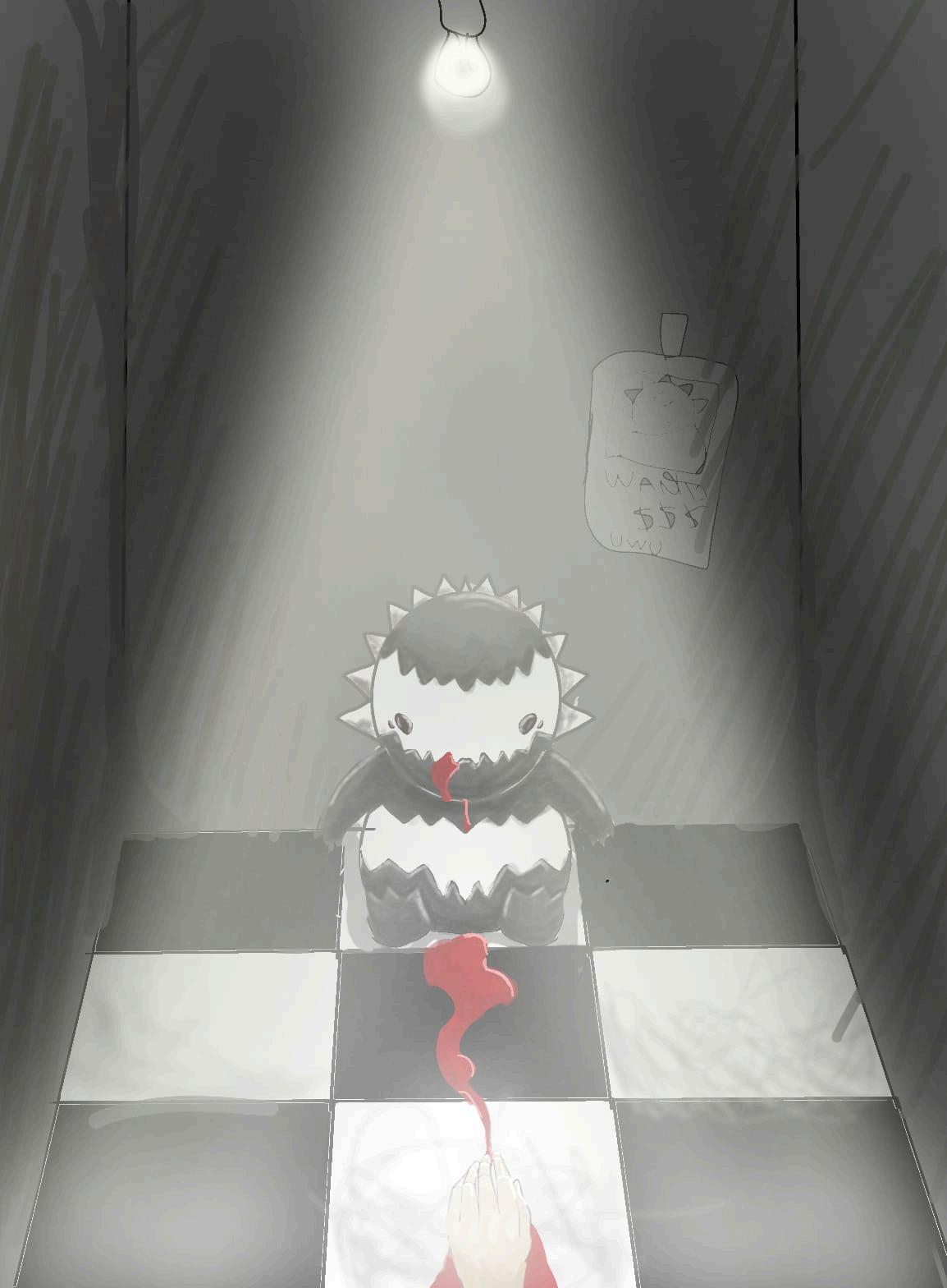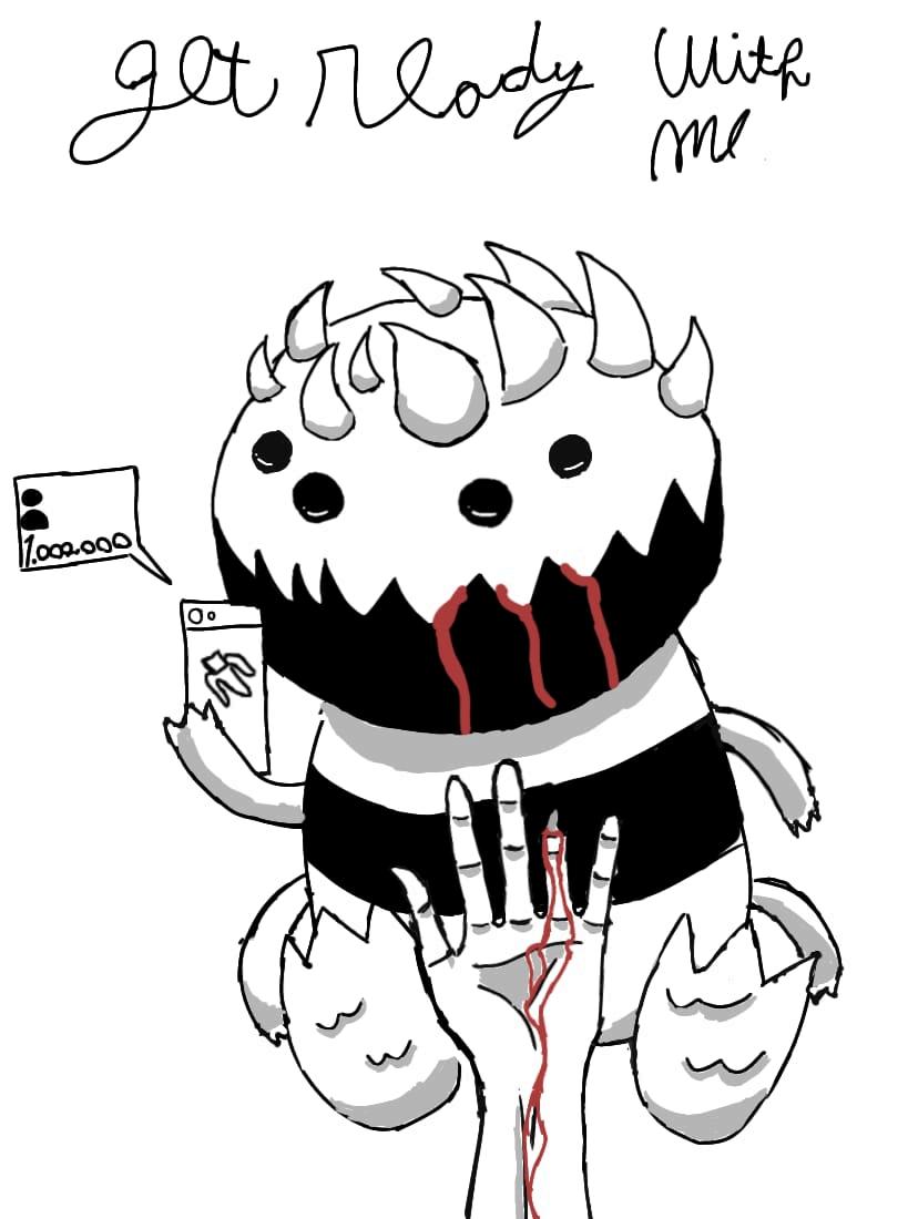 Cuando llegué a la cafetería, me senté y revisé las redes sociales porque es parte de mi trabajo como influencer. Luego de un tiempo, me dieron ganas de ir al baño y fue ahí donde encontré un monstruo pequeño y adorable. Al verlo pensé que no me haría nada por su aspecto. Entonces decidí grabarlo. Atrás mío entró la de limpieza y lo agarró pensando que era un peluche. La pequeña criatura atacó sin dudarlo a la señora, le arrancó la mano de un arañazo. Al ver lo sucedido quedé en shock, corté el video y salí corriendo.