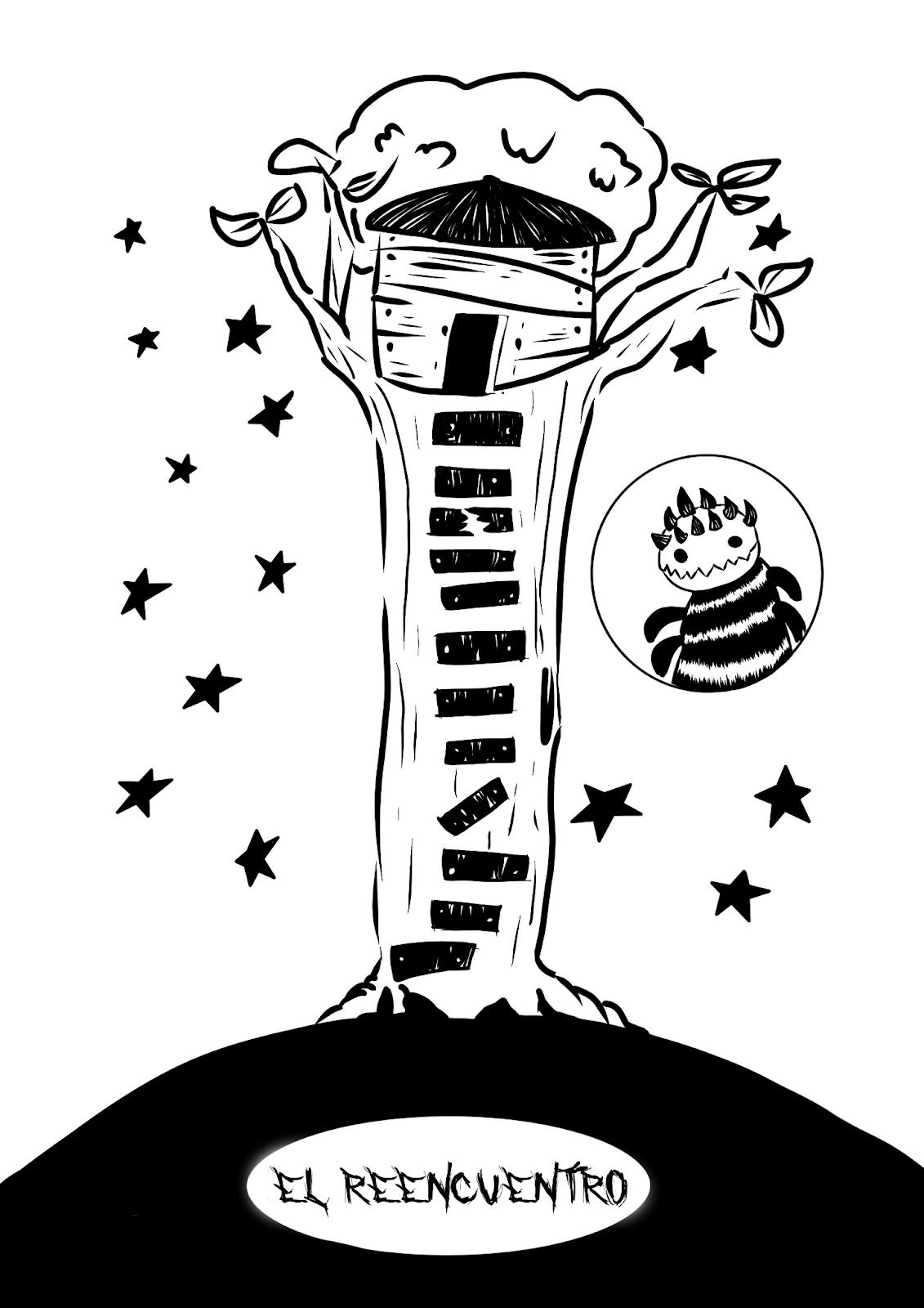 Una noche, escuchó un ruido fuerte, así que decidió ir a explorar, a medida que se adentraba al bosque era más oscuro y tenebroso. Mientras caminaba intentaba esquivar las ramas caídas de los árboles, hubo un silencio hasta que en un momento se escuchó una voz pequeña y femenina. La criatura la reconoció enseguida y salió