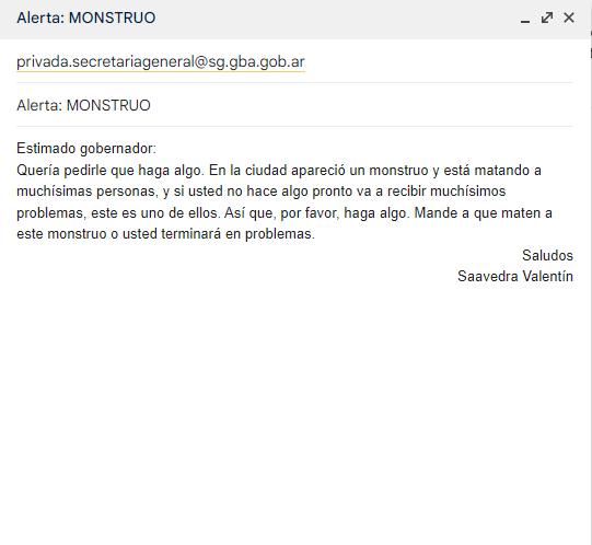 Hoy envié un correo al gobernador, ¿cómo puede ser que haya un monstruo acechando la ciudad? Si esto es cierto, como dice Max, estamos en peligro.