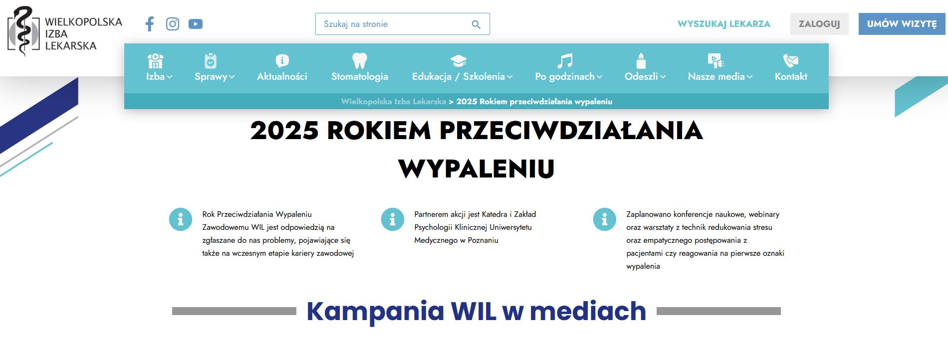 Na stronie internetowej Wielkopolskiej Izby Lekarskiej pojawiła się specjalna podstrona: https://wil.org.pl/rok-wypalenia/ dedykowana wypaleniu zawodowemu, tam lekarze i lekarze dentyści będą mogli znaleźć wiele potrzebnych materiałów – od e-booków