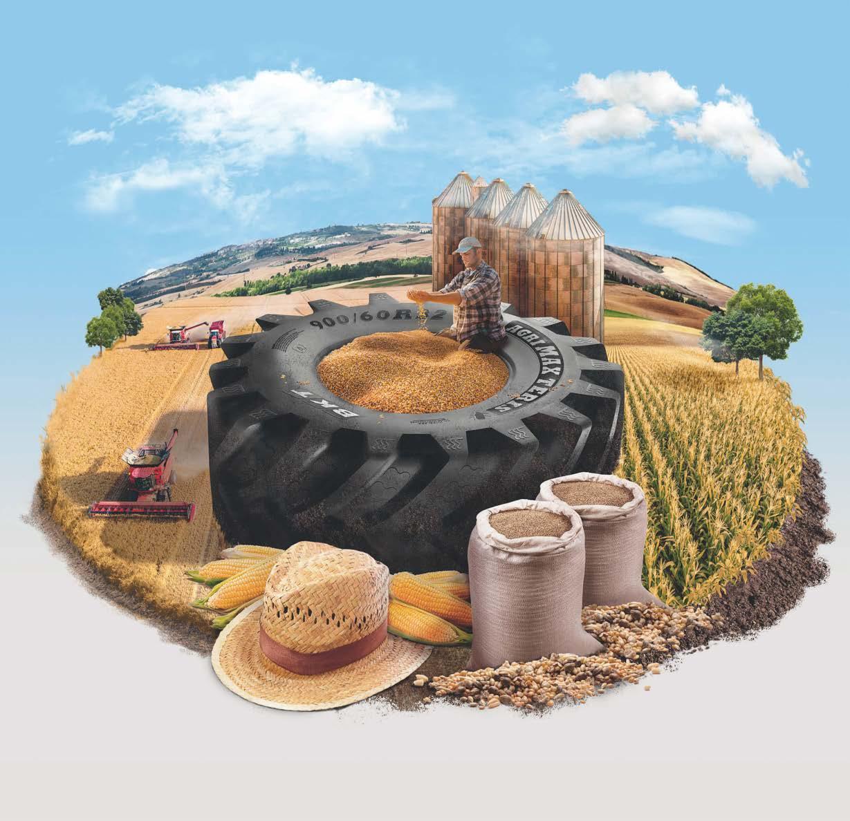 AGRIMAX TERIS es la respuesta de BKT para las máquinas cosechadoras ya que ofrece óptimas prestaciones sin dañar la cosecha.