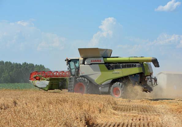 NUEVAS LEXION MONTANA. Las nuevas LEXION MONTANA son má quinas perfectas para su uso en pendientes pronunciadas. Pueden compensar pendien tes laterales de hasta 180 e inclinaciones lon gitudinales de hasta 60. La tracción POWER TRAC, el bloqueo del diferencial para el eje delantero y la limpieza AUTO SLOPE au mentan la velocidad de avance y optimizan el rendimiento en pendientes. www.claas.es