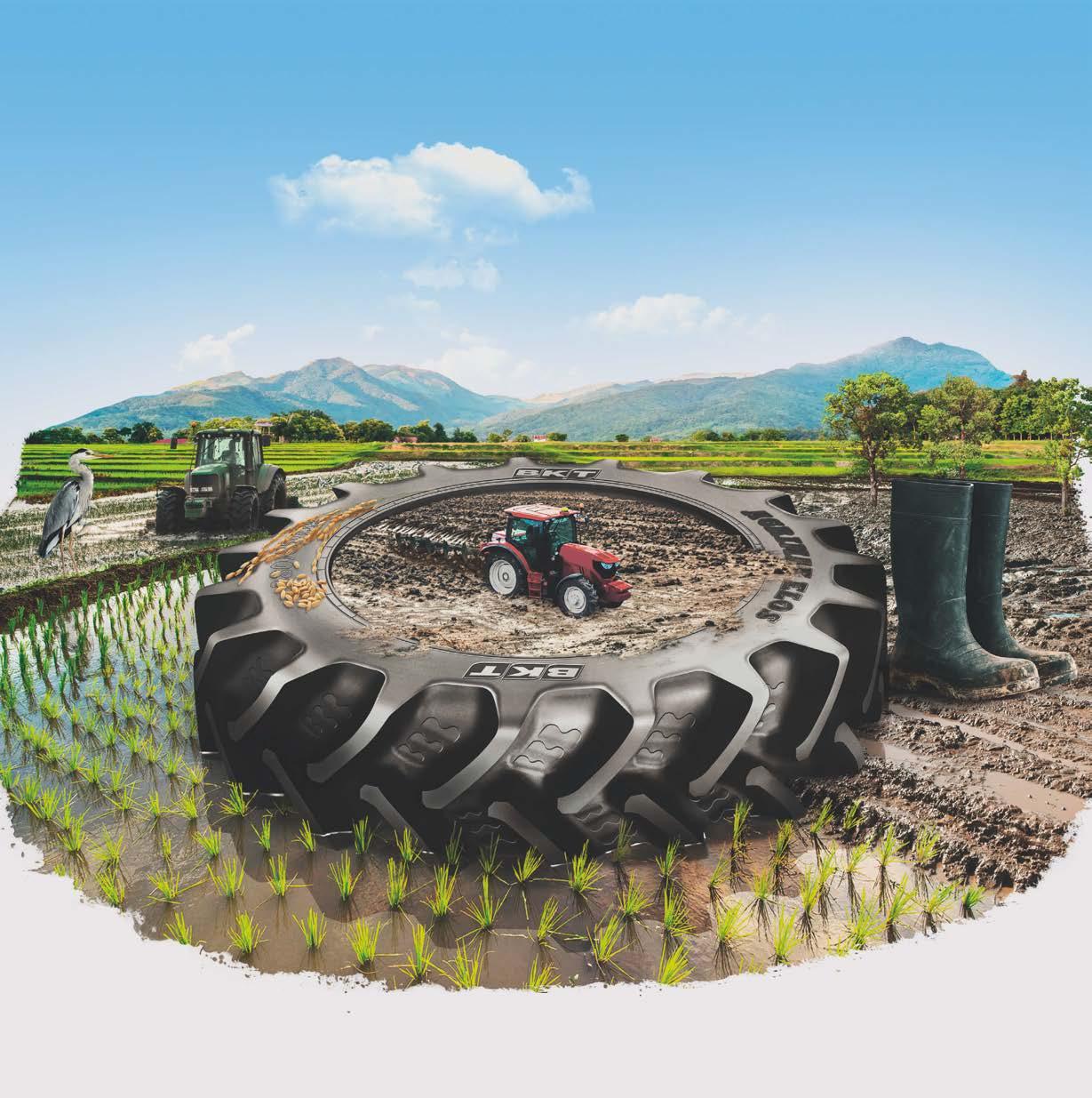 Independientemente de lo difícil que sean tus exigencias, AGRIMAX ELOS es tu mejor aliado en terrenos húmedos, como arrozales y marismas. Este neumático se ha diseñado para ofrecer una tracción máxima y garantizar unas propiedades óptimas de autolimpieza, esenciales para las operaciones en terrenos embarrados y durante traslados. Su diseño se ha complementado con refuerzos en los flancos para garantizar siempre la máxima protección contra posibles daños. AGRIMAX ELOS es la respuesta de BKT en términos de tracción y alto rendimiento, incluso en los terrenos más complicados.