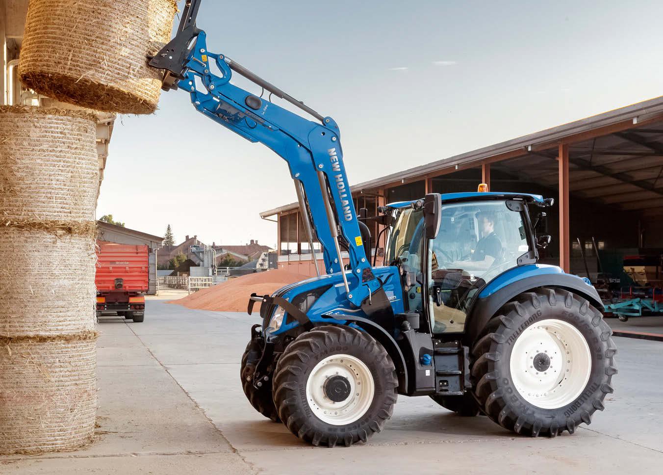 NEW HOLLAND T5, siempre productivo. Los tractores T5 Dynamic Command aseguran la máxima productividad. Sus características técnicas les permiten llevar a cabo tanto trabajos de campo abierto como de transporte o con pala cargadora. Un tractor polivalente mejorado con una transmisión de 8 velocidades bajo carga de máxima eficiencia.