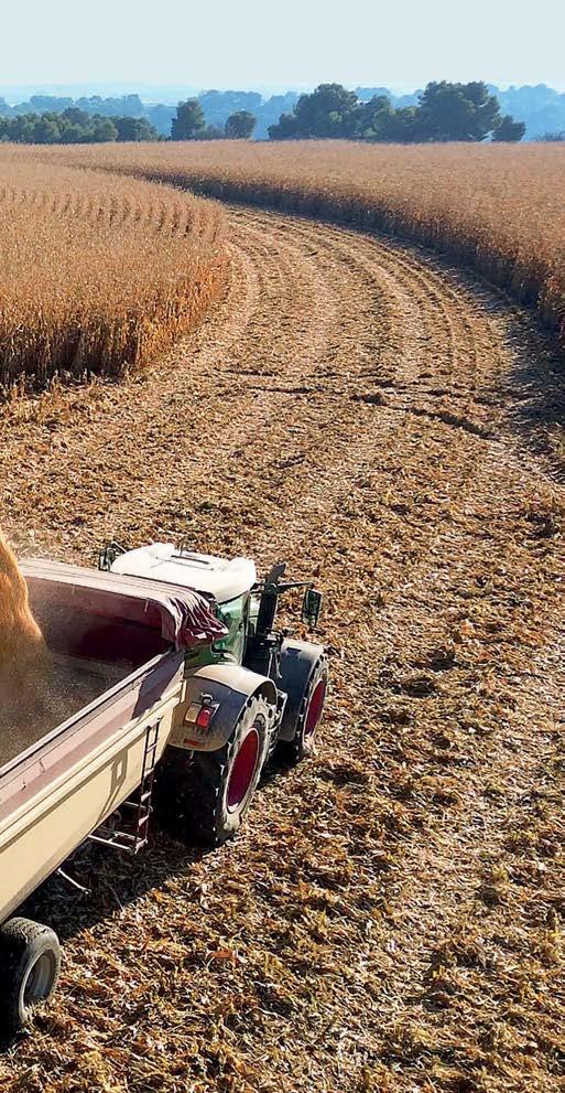 mente hidráulico y un corncracker de 310 mm de diámetro que garantiza una rotura del grano excepcional. Su sistema de transmisión permite gestionar de forma independiente y variable los accesorios frontales, lo que optimiza el uso de cabezales como el PICK UP o el propio ORBIS. Además, integra soluciones digitales de última generación como el NUTRIMETER, una cabina extremadamente silenciosa y un chasis diseñado para ofrecer tracción máxima protegiendo la estructura del suelo.