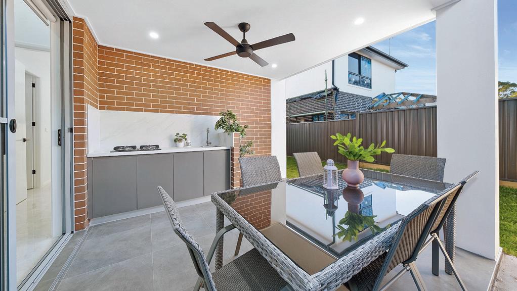 A grand alfresco area with sink, cooktop and ceiling fan add to the homes appeal.