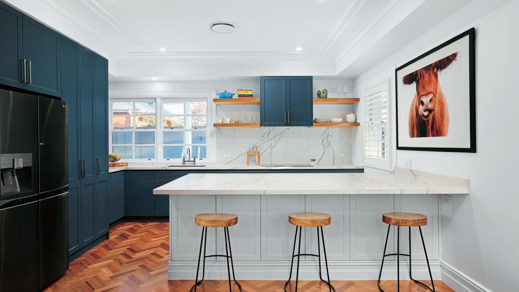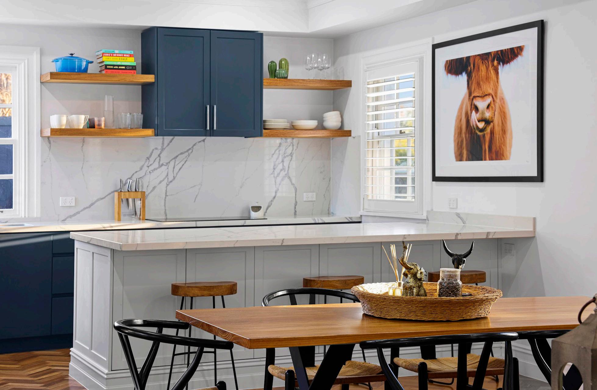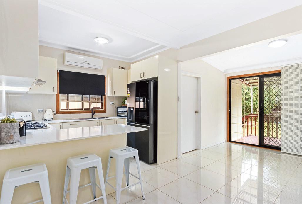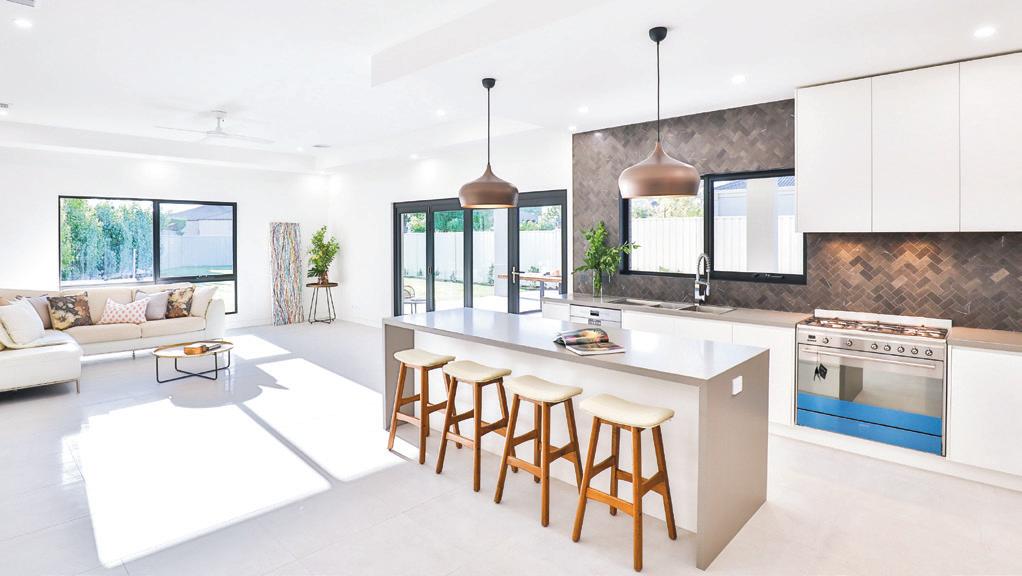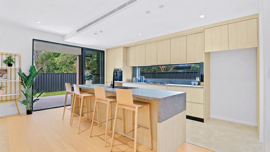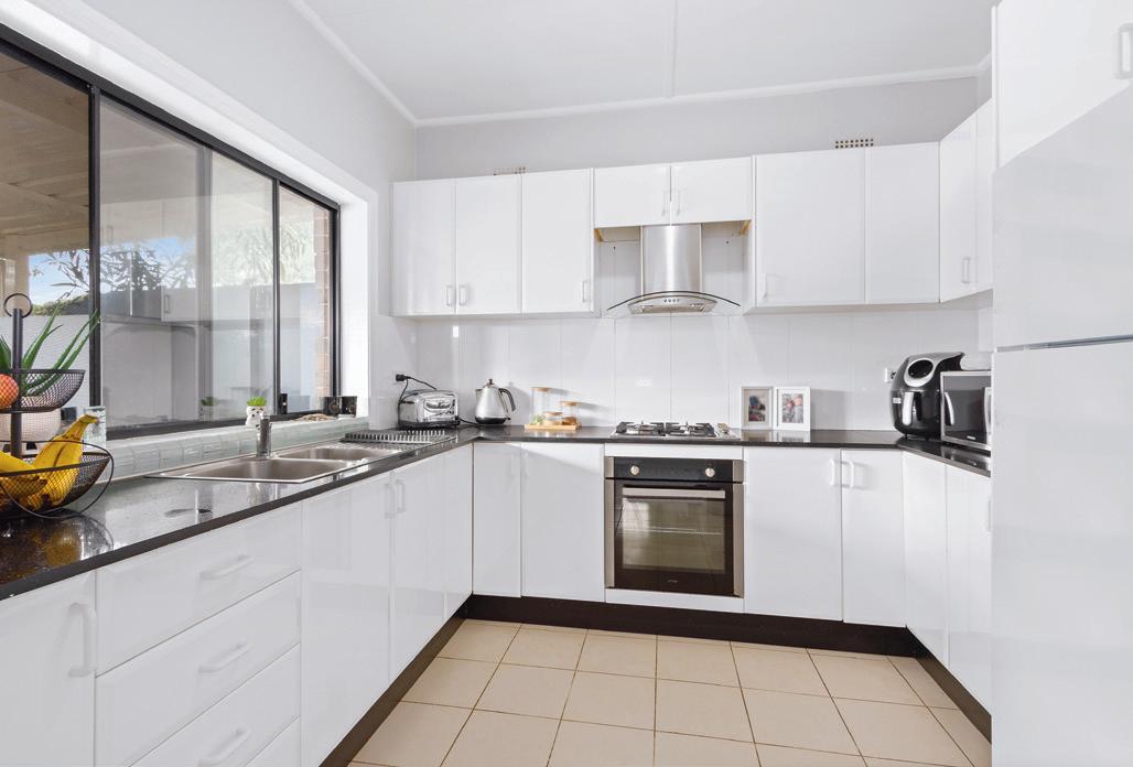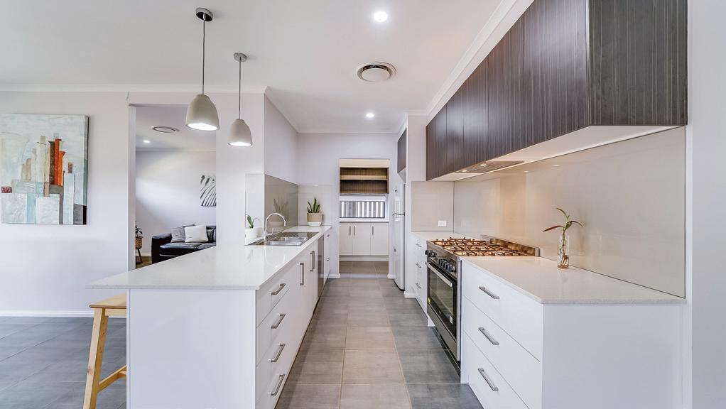 The kitchen features 40mm stone benchtops and island, 900mm stainless steel oven, gas cooktop & butlers pantry with dishwasher.