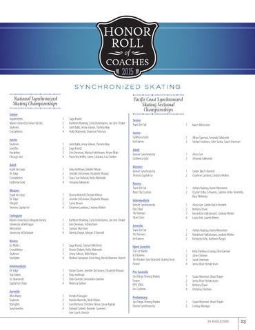 COACHES 2015 S Y N C H R O N I Z E D S K AT I N G National Synchronized Skating Championships Senior Haydenettes Miami University Senior Varsity Skyliners Crystallettes