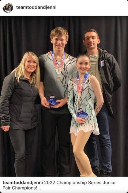 “Todd and Jenni's team is my second family. Todd is always focused on details and safety for girl partner. He’s very big on that! Jenni is always there for me for pep-talk or nice push when I need it. Christine is the happiest coach I know and a huge cheer leader for all of us on an everyday basis...Todd and Jenni created an atmosphere of high standards, hard work, and full support between the skaters and coaches. I couldn’t be more grateful for sharing the ice with my teammates and I love my coaches forever!” Sonia Baram