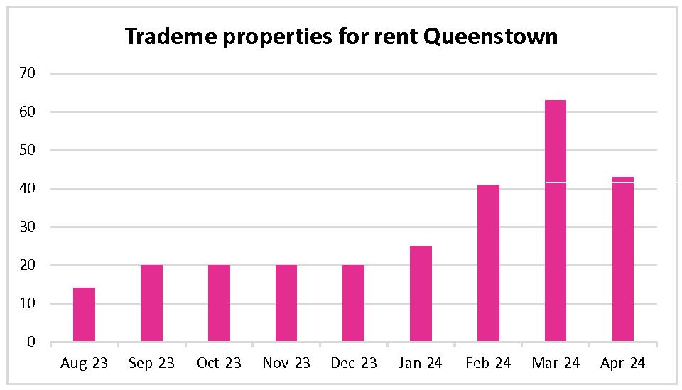 ThesupplyofQueenstownresidentialpropertiesforlethasbeenincreasinginrecent monthsbuthasdecreasedfrom63availablelastmonthto43propertiesavailableforMay 2024.