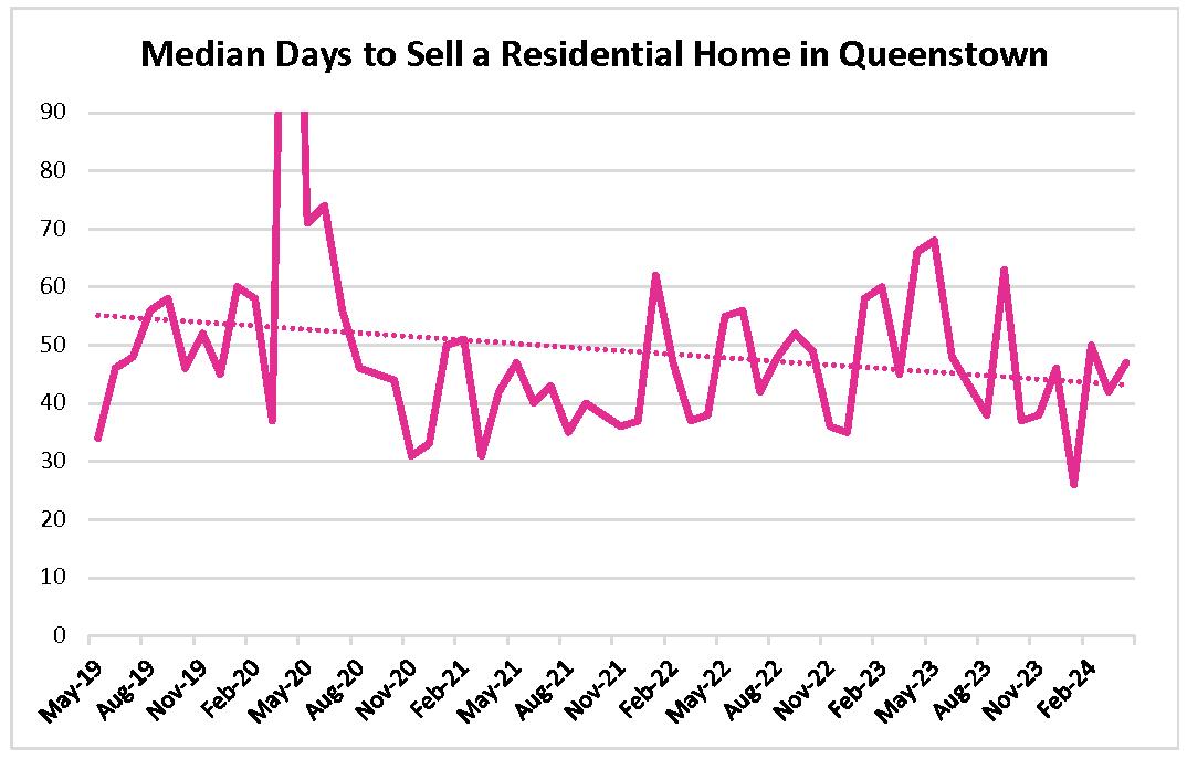 QueenstownAreaRealEstateSalesSta�s�csApril2024 Apr24 Mar24 Apr23 Mar23 DwellingSales 55 66 77 70 ApartmentSales 1 5 28 2 Sec�onSales 8 6 1 5 Lifestyle(Rural)HomeSales 1 1 1 1 Lifestyle(Rural)LandSales 1 2 2 2 QueenstownAreaSalesTotals 65 75 81 78 MedianResiden�alDwellingPrice $1,490,000 $1,357,500 $1,055,125 $1,420,000 MedianResiden�alDwellingDaystoSell 47 42 66 45 MedianResiden�alLandDaystoSell 11 61 30 73 MedianApartmentDaystoSell 52 21 89 99 SalesOver$2Million 14 18 14 16 SalesOver$3Million 4 8 9 8