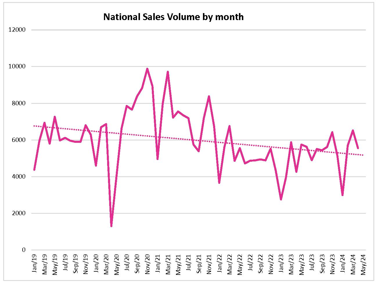 Queenstownrecorded65salesofresidentialpropertyforApril2024,some15%downon March2024and20%downonApril2023.Salesvolumeistrendingdownbothmonth-bymonthandcomparedtoMarchandApril2023.Salesnumbersremainhealthy,butclearly theeffectsoftheeconomicslowdownarebeingfeltinQueenstownrealestatesales.