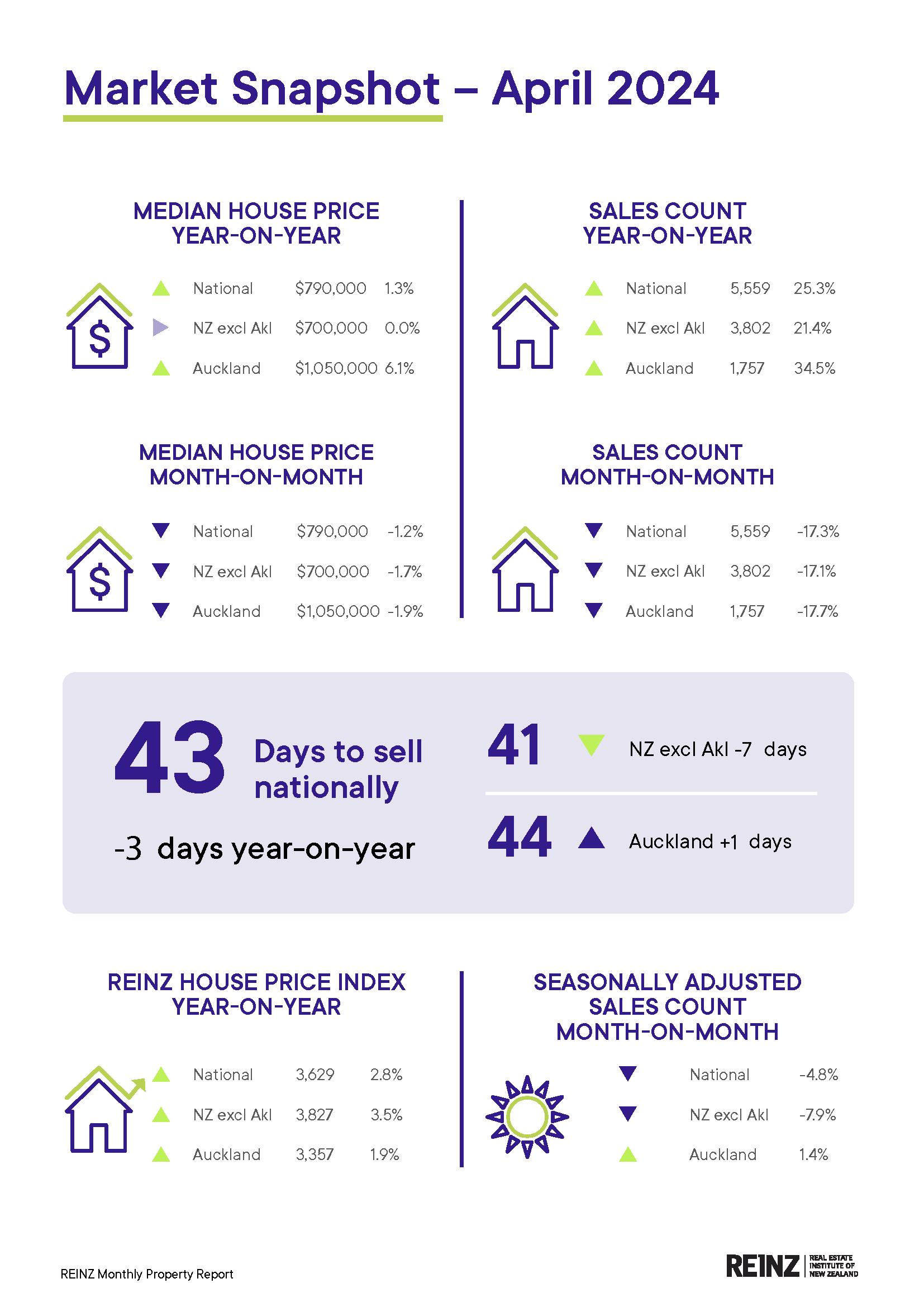 JenBairdCEOfortheRealEstateInstituteofNewZealandstatesthat"themarketis subdued,despitenationallyseeinghighersalescounts,propertiessellingmorequickly, increasedstocklevels,andmorelistings,comparedtoayearago.Theseincreasesarea contrastwiththemuchlowermeasuresseeninApril2023,followingtheimpactsofweather eventslikecyclonesHaleandGabrielle,butarebelowtheaverageforthistimeofyear longer-term.” [SeeREINZreport]