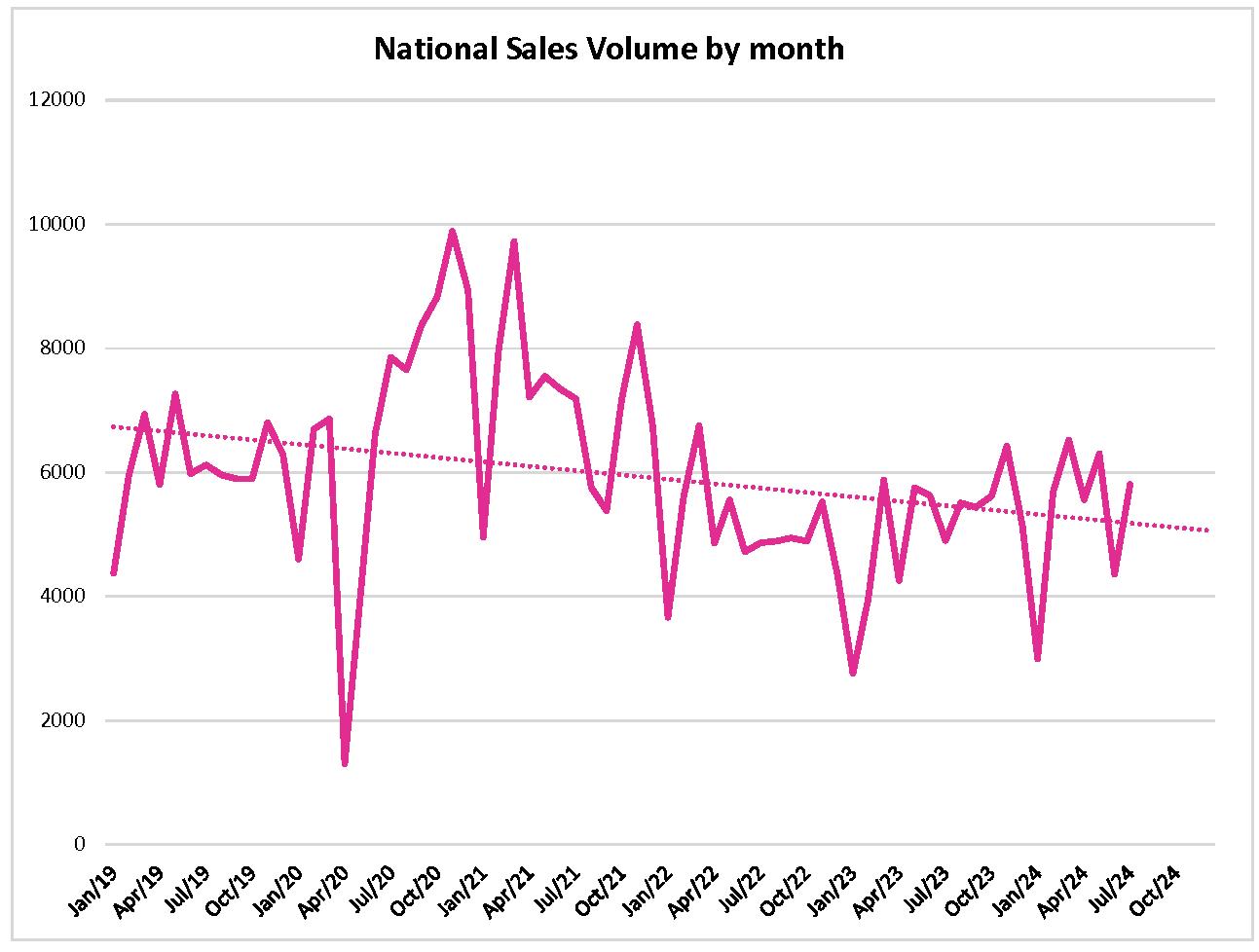Junerecordedalowerthanexpected39sales,withJulyrecordingastrongmonthwith75 sales.July’s75salesbeingaverysignificant67%increasefrom45forJuly2023,and year-to-datesalesfor2024areaheadofthosefor2022and2023.