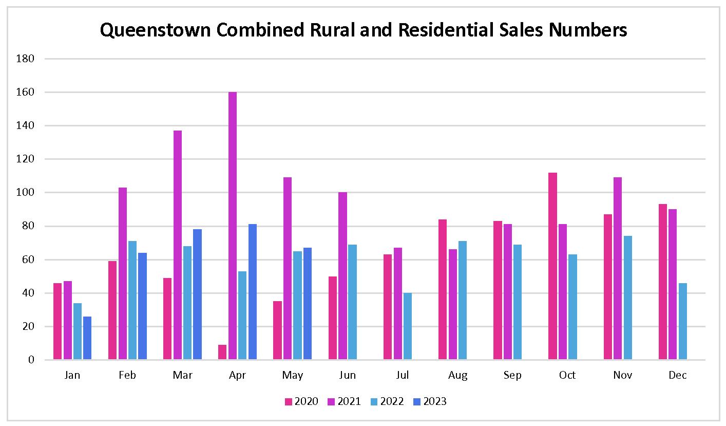 Queenstownareasalesnumbersaresubduedbutremainhealthy.67salesforMay2023, comparedto81forMay2022.Salesfortheyeartodateat316areaheadofthesame period2022at291.