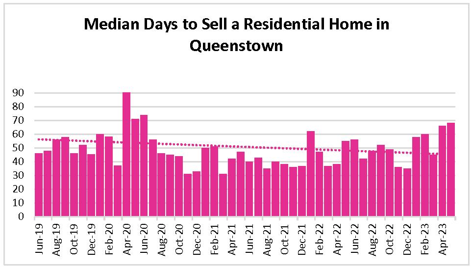 MediandaystosellforQueenstownresidentialhomeshasliftedoverthelasttwomonths, suggestingahesitancyfrompurchasersthatisnewtotheQueenstownmarket.