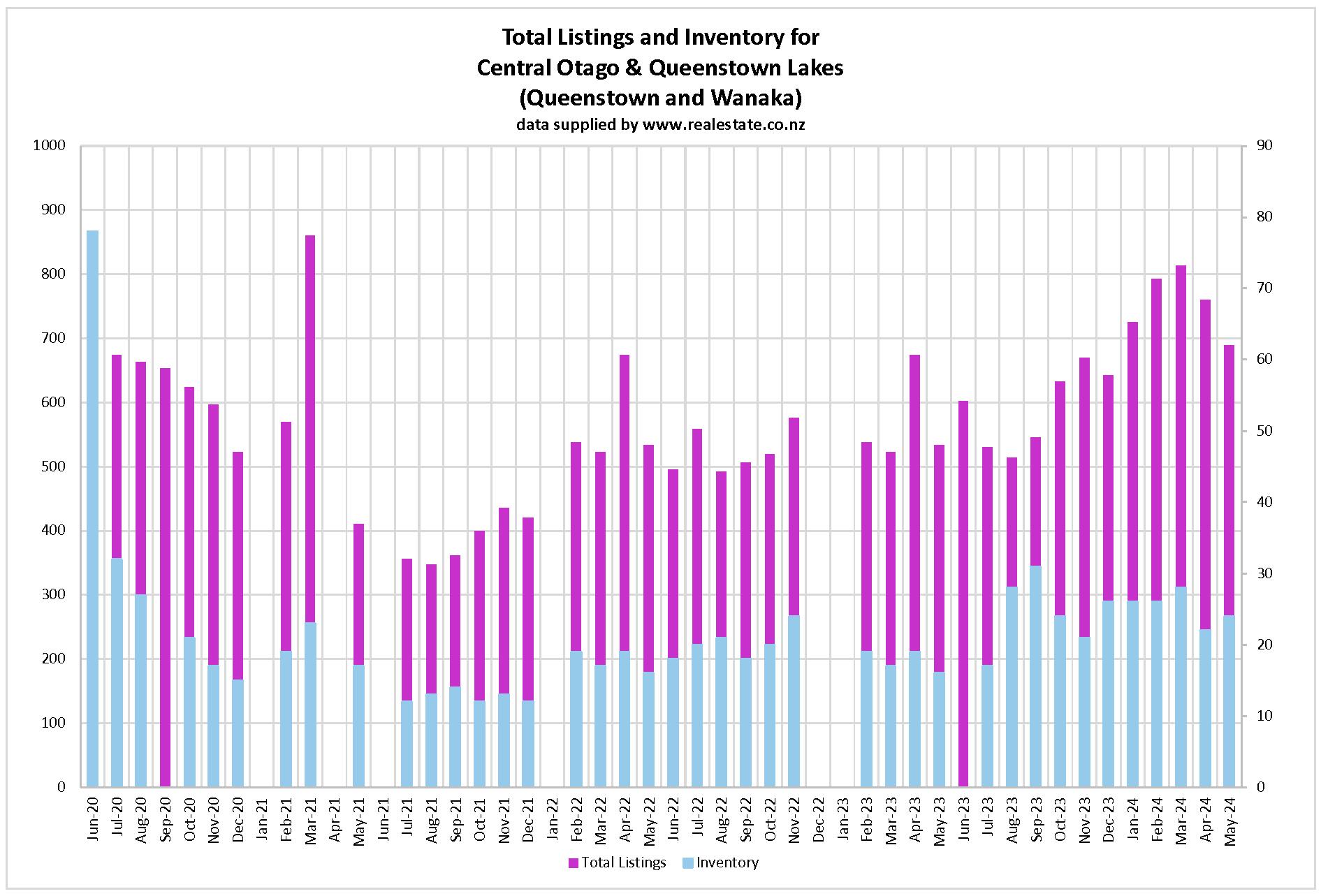 NewlistingstotheQueenstown-Lakesmarket(WanakaandQueenstown)is147,6%upfrom April2024andinlinewithnormalseasonalpatternsofdecreasedlistingnumbersacrossthe wintermonths.Inventory,ortheperiodrequiredtosellthecurrentnumberoflistingsatthe currentrateofsales,hasincreasedto24weekscomparedtoalowpointininventoryforApril 2024at22weeks.