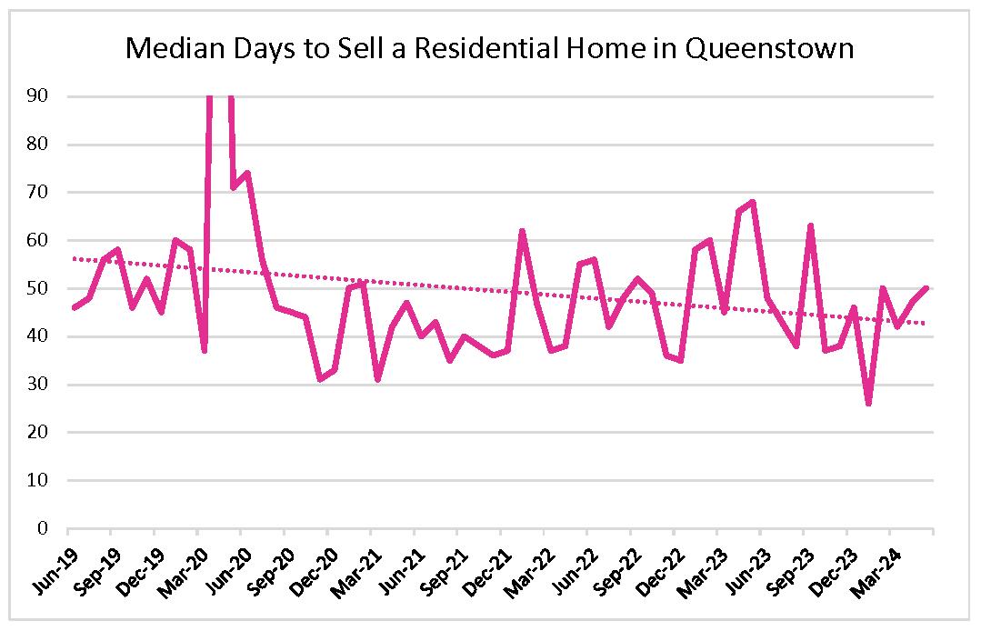 QueenstownAreaRealEstateSalesSta�s�csMay2024 May24 Apr24 May23 Apr23 DwellingSales 60 55 58 77 ApartmentSales 4 1 10 28 Sec�onSales 8 8 8 1 Lifestyle(Rural)HomeSales 2 1 1 1 Lifestyle(Rural)LandSales 0 1 0 2 QueenstownAreaSalesTotals 70 65 67 81 MedianResiden�alDwellingPrice $1,443,000 $1,490,000 $1,297,500 $1,055,125 MedianResiden�alDwellingDaystoSell 50 47 68 66 MedianResiden�alLandDaystoSell 62 11 49 30 MedianApartmentDaystoSell 127 52 75 89 SalesOver$2Million 17 14 11 14 SalesOver$3Million 9 4 5 9