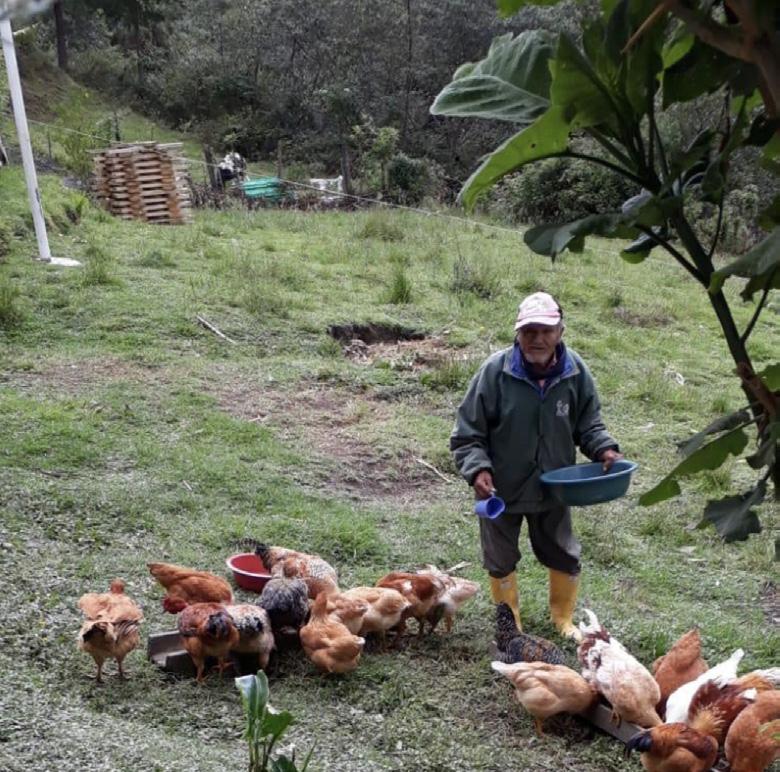 Hace aproximadamente 12 años, Manuel enviudó y vive solo en su finca, la cual no es un lugar seguro para una persona de su edad. Durante la temporada de invierno, el acceso a la finca se vuelve difícil y algunos vecinos le ayudan a llegar a su casa. De sus 15 hijos, solo 5 le brindan apoyo económico para solventar los gastos de comida.