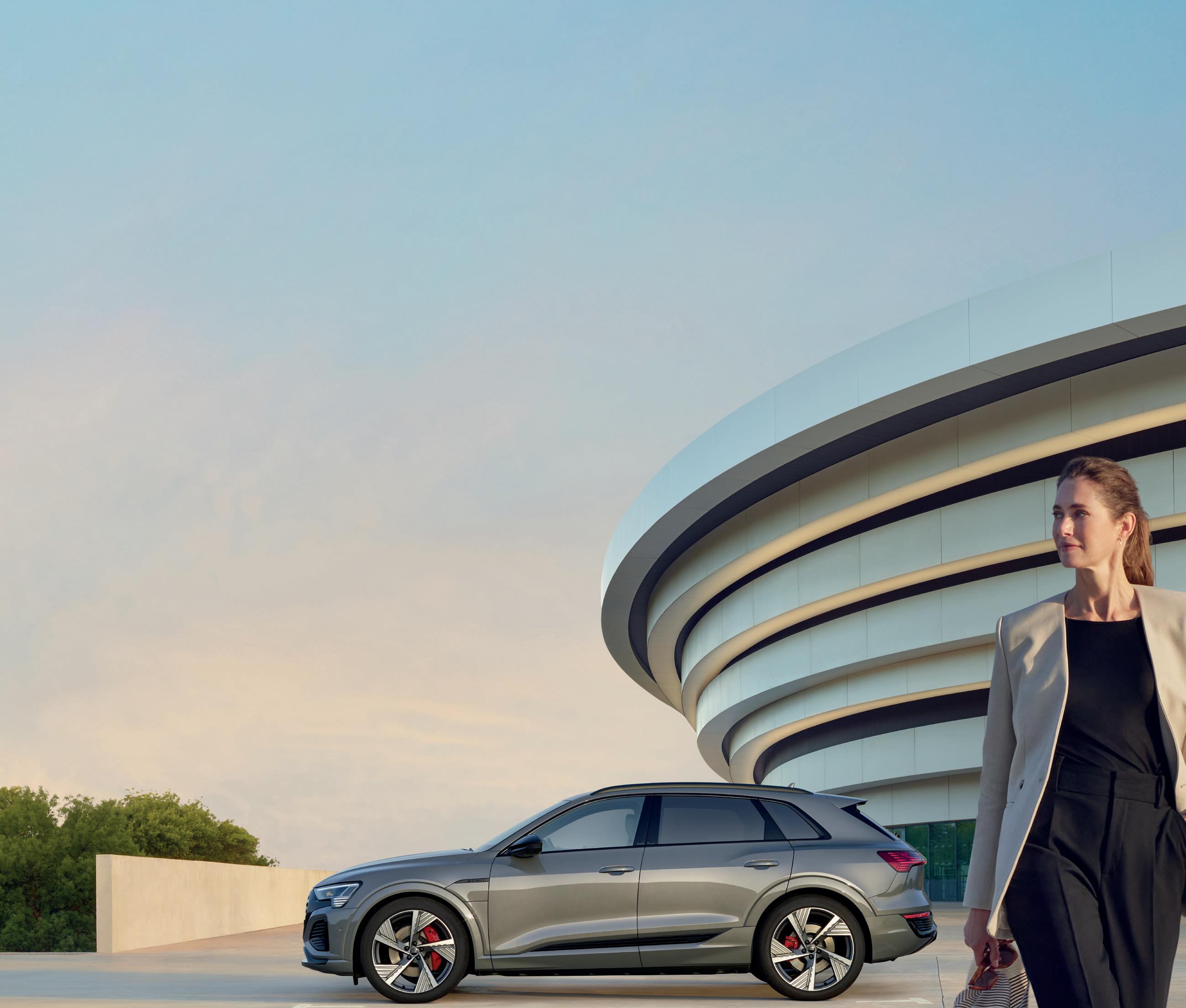 Audi Q8 e-tron — med øget rækkevidde, højere ladeeffekt og endnu mere progressiv luksus.