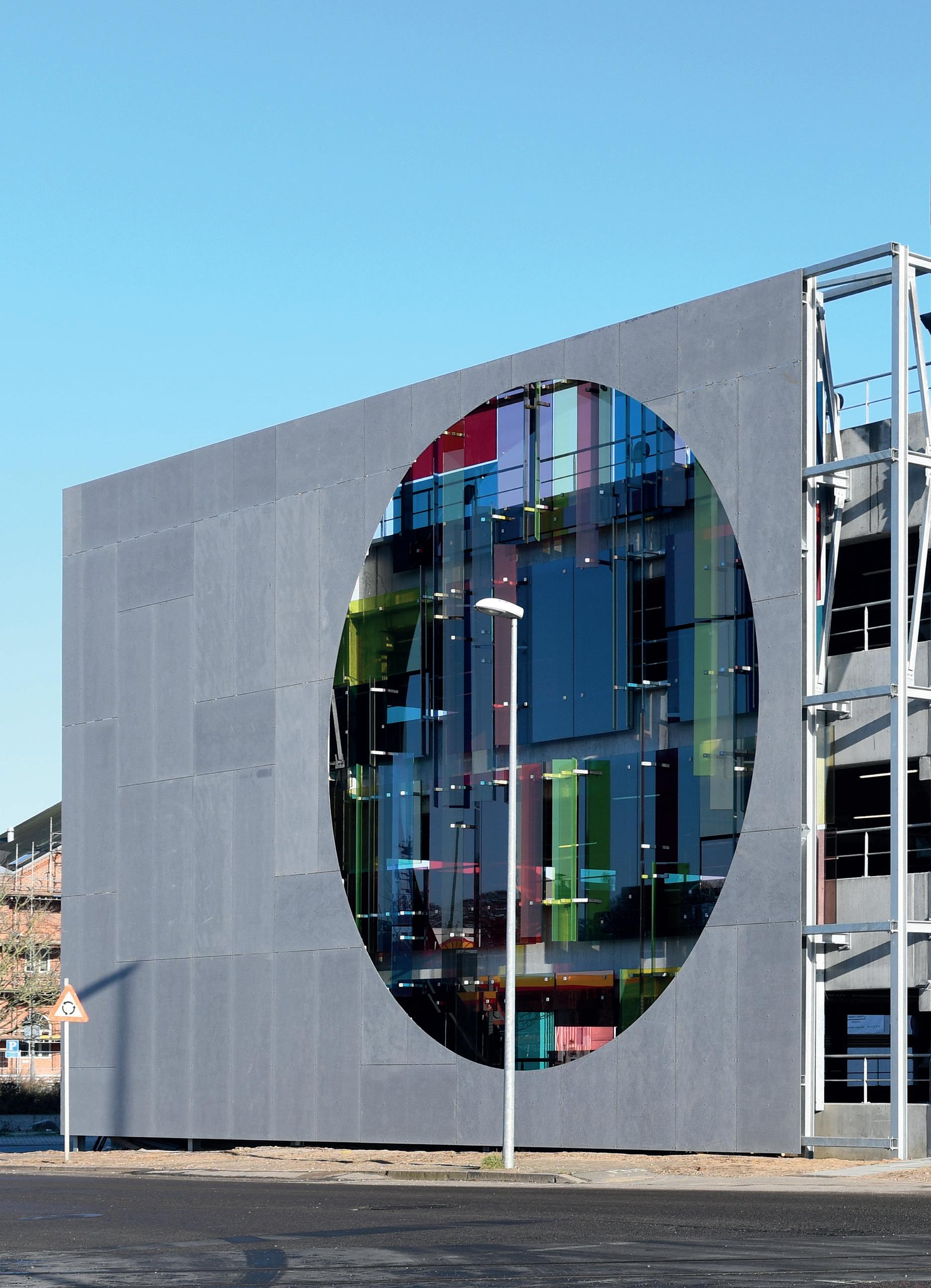 byen, og viser sig forskelligt alt efter årstid og tidspunkt på dagen. Faktisk er udtrykket forskelligt hvert eneste øjeblik. Inde i parkeringshuset findes smukke betonskulpturer, der både bidrager til årvågenhed og rummer tankefulde narrativer.