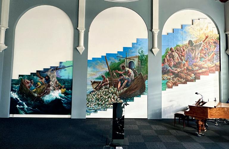 Kunstneren Benjamin Abana har skabt et pusespil af malerier med brikker fra både fortid og nutid og malet bl.a. Lillebæltsbroen ind i biblen. De tre værker kan opleves i Fredericia Missionshus, Nørre Voldgade 18.