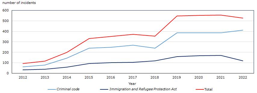 According to Uniform Crime Reporting (UCR) survey data, there have been almost 4,000 police-reported incidents of human traf fcking from 2012 to 2022 across Canada. That might not sound like a lot, compared to other types of crime. However, this is only police-reported data. Most of these crimes are not reported. United Nations research found only 0.4 per cent of worldwide human traf fcking victims are ever identifed.