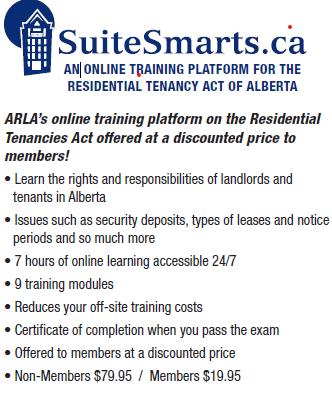 learning, which is accessible 24/7, in nine training modules. ARLA members can take the course at a reduced rate of $19.95 (compared to $79.95 for non-ARLA members). Attendees receive a certificate of completion upon passing the exam. For more information and to sign up, please visit www.suitesmarts.ca.