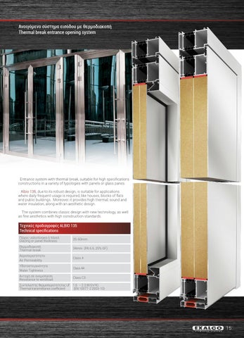 Τεχνικές προδιαγραφές ALBIO 135 Technical specifications Πάχος υαλοπίνακα ή πάνελ Glazing or panel thickness