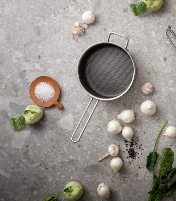 Siden 1977 har Eva Trio været synonymt med professionel kvalitet i køkkenet. Sortimentet, der spænder fra kogegrej og køkkenværktøj til porcelæn, forener tradition med innovation. Altsammen for at løfte både madlavning og servering til kunstneriske højder.
