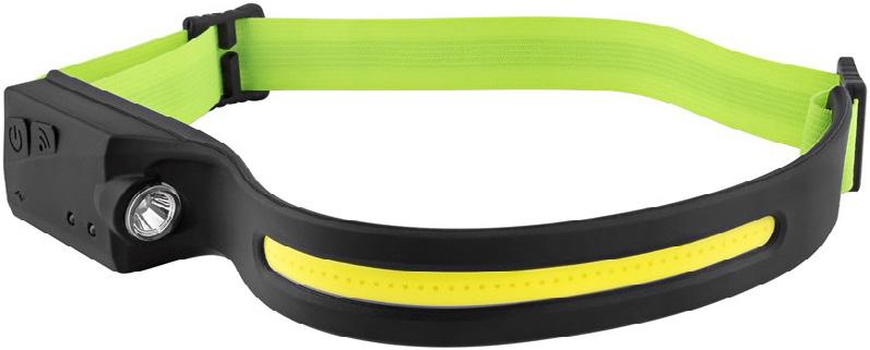 Uppladdningsbar högteknologisk pannlampa med 120 lumen/3 watt chip-LED-ljus och 350 lumen/5 watt COB-ljusband – perfekt för att hålla händerna fria för att arbeta. Tänd och släck med en enkel svepande handrörelse. COB och LED lamporna har 2 ljuslägen 100%, 50% och blinkande funktion. Den fastsydda reflexremmen på baksidan ger extra säkerhet. Miljövänligt, uppladdningsbart 1200 mAh litiumpolymerbatteri. Pris vid 100st 184:-/st inkl 1-f tryck (vitt eller silver)