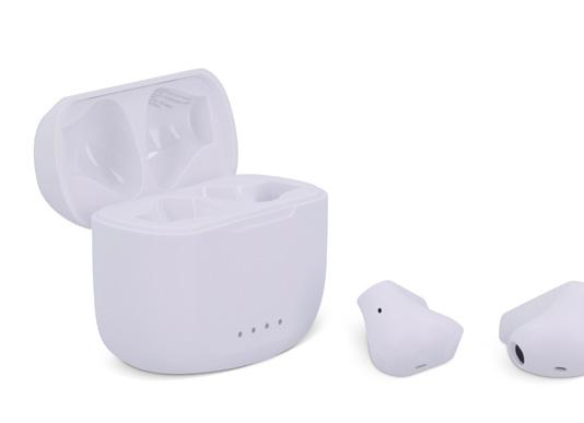 Trådlösa hörlurar utrustade med aktiv brusreducering för att stänga ute störande ljud. Svart fodral som ger en möjlighet att gravera eran logga i vit LED, som lyser upp när du öppnar fodralet. Med touch-funktionen kan du enkelt byta låt, justera volymen och svara på samtal utan att behöva ta upp telefonen. Hörlurarna har dubbla mikrofoner för att ge en bättre samtalskvalité. De trådlösa hörlurarna har ett kraftfullt batteri på 300mAh. 55x45x26mm.